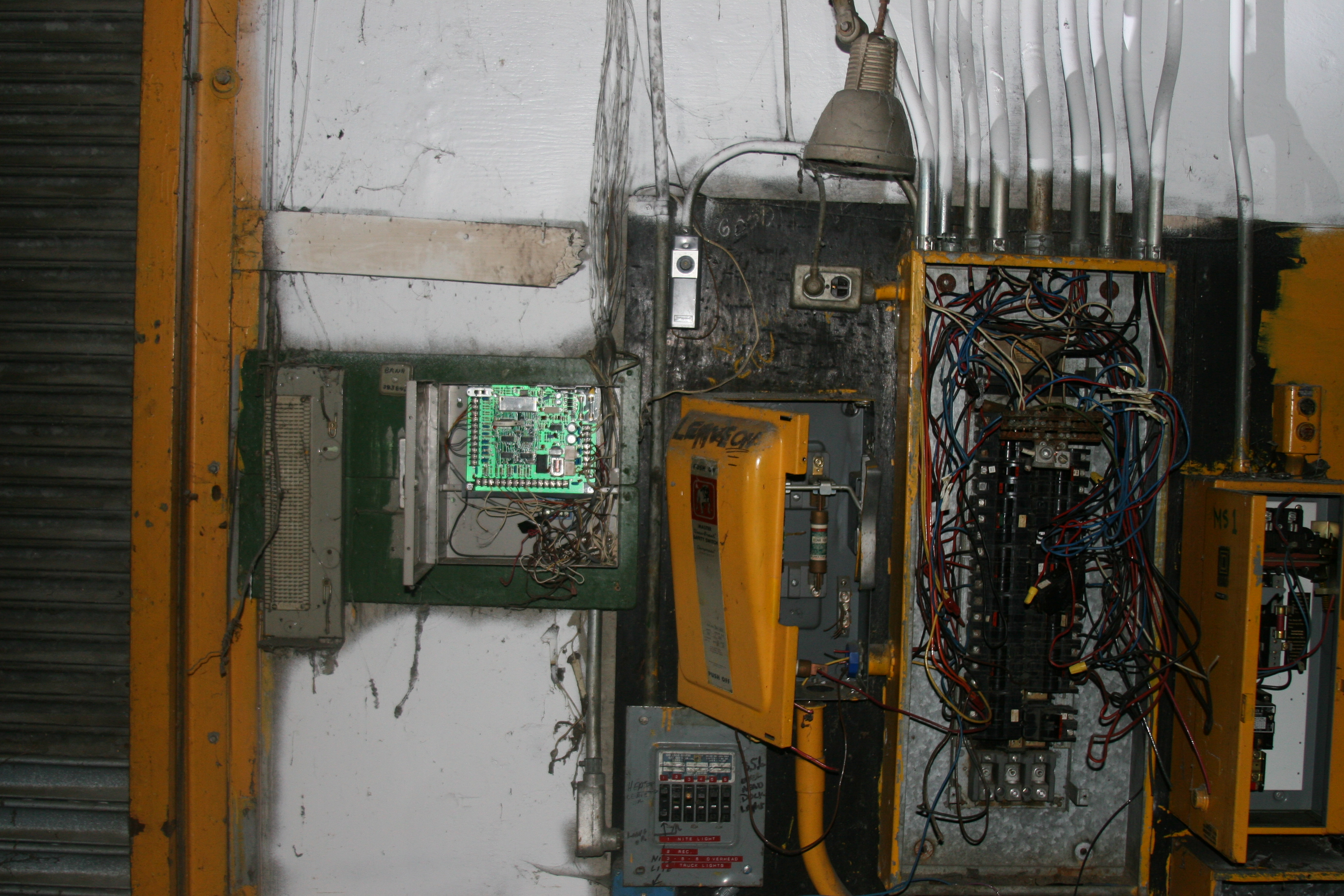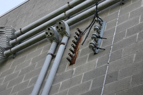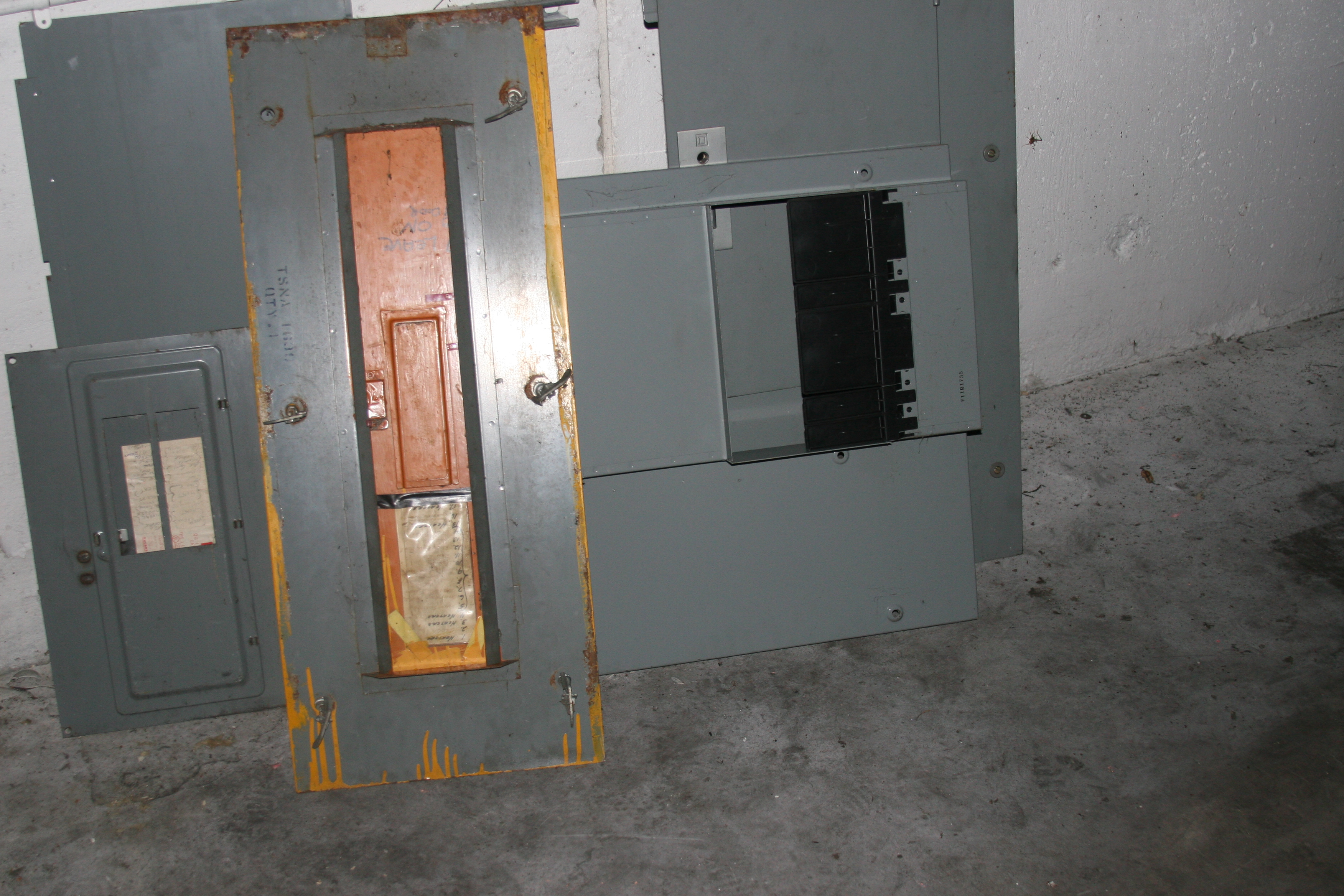 I'm not sure if the disconnection from the electrical grid is symbolic of the BMPA's commitment to green energy, a penalty for no payment of electricity, or just a means to ensure safe scrapping of the rest of the building's electrical infrastructure. The scrappers did a nice neat job though, carefully removing and stacking the access covers.